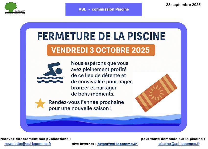 PISCINE – FERMETURE SAISON 2025 🏊🏻♂️ 🏊🏻♀️